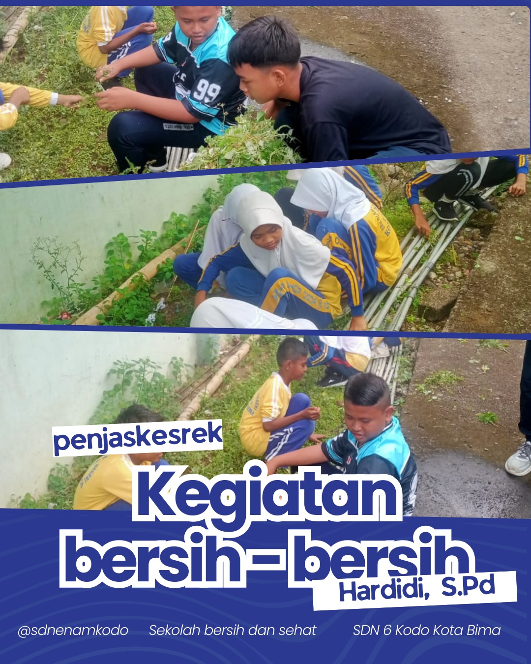 Siswa Kelas 6 SDN 6 Kodo Kota Bima Gotong Royong Bersihkan Sekolah Sebelum Pelajaran Penjaskes