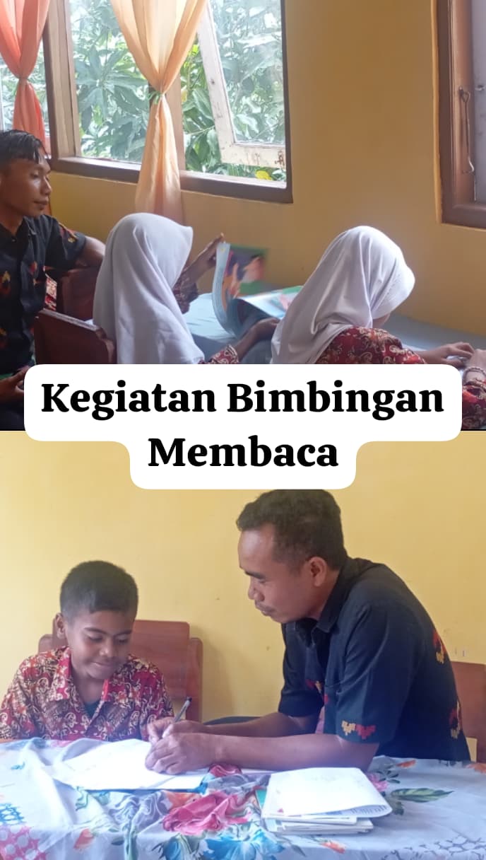 Guru Pendamping Kelas 6 SDN 6 Kodo Bantu Siswa yang Kurang Lancar Membaca di Perpustakaan